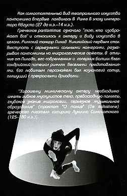 Елена Маркова: Я имею в виду, что современная пантомима к нам пришла с Запада. И взросла она на необычайном интересе к таланту Марселя Марсо, Жан-Луи Барро. А между тем, в начале века, когда плеяда блистательных режиссеров - Вахтангов, Мейерхольд и даже поздний Станиславский - этими вопросами очень занимались, мы были близки к организации собственной, отечественной школы пантомимы. Вопросы пластической образности сейчас настолько актуальны, что появилась новая профессия под названием режиссер по пластике. Никогда в жизни не забуду спектакль "Превращение", поставленный Фокиным. Но ведь пластику ставил Леонид Тимцуник. И если бы там не было этого перерождения человека в животное, решенного именно пластическим образом, может быть, спектакль не получил бы Золотой маски. Дело в том, что пантомима это, собственно, исконный язык театра. Великий Крэг так и говорил, что мы читаем текст спектакля глазами. Он даже говорил больше, что искусство театра родилось из танца. Имеется в виду игра через движение. Но мы же свою собственную традицию изничтожили, и довольно долгое время пантомима была не только бранным словом, а словом, за которое человек мог просто пострадать. И до сих пор многие мастера (я работаю в Петербургской Театральной академии) при слове пантомима вздрагивают. Они считают, что заниматься проблемами формообразования в театральном искусстве постыдно. Поэтому я и говорю, что традиция была прервана, а мощное молодежное, любительское движение ее восполняло. И надо сказать, что с очень неплохими результатами. Но нынче эта система разрешена. Тут учреждена "Белая маска". Я очень надеюсь, что она поможет исправить ситуацию. И что драматические театры тоже со временем будут очень серьезно подпитываться. Нам известны примеры. Тот же Леонид Тимцуник - выпускник экспериментального класса пантомимы. Когда поставили во МХАТе "Номер 13", корифеи российского театра приходили: "Как вы это делаете? Как здорово! Откуда вы?". - "Да из класса пантомимы"