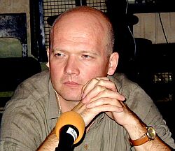 Игорь Мартынов: Не нравится мне это слово - писатель. Сегодня это лишний человек, причем без всякой печоринской романтики. Не нужный, мертвый душман на теле России. Сочинитель - лучше, намекает на какие-то способности, а всего честнее - журналист. Это занятость, профессия, человек при деле. Те, для кого я пишу, сейчас книг все равно, не читают. Они читают газеты, журналы, смотрят кино. А мои тексты - контактные, многое в подтексте, многое рассчитано на ответную реакцию, получается ли, я моделирую по своему подобию, и надеюсь, что он играет со мной как бы на равных. Принцип самодополнения, понимаешь? Сергей Юрьенен: У нас в Праге на "Свободе" Игорь Мартынов. Напомню: не только писатель. Звучит песня Мартынова. В связи с повышенным интересом слушателей, начнем, быть может, с биографических данных, в капсульной форме. Родился на Арбате в роддоме имени Грауэрмана, сорок лет спустя после Окуджавы. МГУ, из-под парты Гумилев и Мандельштам. Прага, Карлов Университет. Шел за гробом чешского лауреата - Сейферта. В пражской пивной за одним столом с еще опальным Гавелом. Потом, как журналист, встречался еще с пятью президентами. Летал на вертолете над Советским Крымом, над сибирским озером Вах, неоднократно проехал от Байкала до Амура по одноименной железной магистрали. На Эйфелеву башню подниматься не стал, потому что в Париже были дела поважнее. Брал первое интервью для советской прессы у Великого магистра масонской ложи - "Великий Восток Франции". Москва. Попытки излить пережитое на дисплее. Стихи, эссе, проза, переводы. Рильке, Грабал, Джиан, Чарльз Буковски. Песни, с помощью которых склонил к себе сердце Марины, которая родила наследника Михаила. Рассказы в старой и новой "Юности", публикации в "Новом мире". Обозреватель "Комсомольской правды" и постоянный автор радио "Свобода". На наших радиоволнах, его впервые услышала Алла Марченко, известный критик и литературовед. Наш коллега - Ирина Лагунина читает статьи Аллы Максимовны - "Дух легкости", "Литературная учеба", номер 1-ый за 95-ый год: "Он ворвался в тесно-свободный эфир беззаконной кометой. Он несся, искря и бенгальствуя на явно невозможной в нашей земной глуши энергосиле. Он озоровал в надземном пространстве, не очень то звуковом, политически озабоченном, с такой беззаботной стремительностью, что словно дух легкости был у него на посылках. Он перемахивал вехи и версты, межи и промежутки меж звуком и понятием между мыслью и тенью мысли, меж словом и образом слова с таким насмешливым безразличием к невозможности моего восприятия, что я, каюсь, всерьез разозлилась. При последующих встречах с неподзаконным этим объектом раздражение стушевалось, спрессовалось и съежилось перед профессиональным азартом. А что если "радио беззакония" перевести с русского устного на русский письменный? Но Игорь Мартынов, пожалуй, единственный среди авторов моего выбора, не позволил словить его с первой попытки. Утек, ускользнул, отговорился. Жизнь мол, нынче бегучая, к прозе журнальных объемов не клонит". Сергей Юрьенен: У нас на "Свободе" писатель - против литературы. В пражской студии - Игорь Мартынов с еще более откровенными аргументами... Игорь Мартынов: Начнем с того, что это по-человечески постыдно. Когда взрослый мужчина, вперившись в потолок, покусывает ручку и что-то вымышляет. Играет на бумаге, мечет бисер перед самим собой
