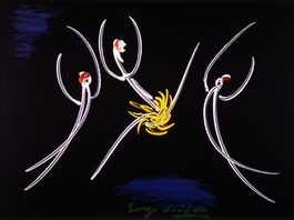 Лиля Пальвелева: Готовясь к фильму "Легенда о Тиле", Владимир Наумов сделал около тысячи рисунков. Владимир Наумов: Например, у Шарля де Костера сказано, что затопили город. Я начал рисовать, как он может быть затоплен. Мне показалось, что очень интересны затопленные памятники, когда всадник с мечом на коне вот до сих пор затоплен. На нем сидят люди, которые спасаются. Потом эта идейка, которую я набросал, вылилась в огромный эпизод. Построили 36 домов на глубине 8 метров. Там плавали настоящие корабли, стояли памятники и так далее. Я даже не знаю, что бы я делал, если бы я не рисовал - худо, бедно, плохо - но это для меня, конечно не хобби, это потребность, которую я удовлетворяю так, как могу. Лиля Пальвелева: Директор Музея имени Пушкина Ирина Антонова представляет еще одного участника выставки "Скрипка Энгра", автора серии акварельных рисунков. Ирина Антонова: Сейчас я хочу передать слово Владимиру Викторовичу Васильеву, великому танцовщику, балетмейстеру. Его имя известно всему миру. Кстати, он участник "Декабрьских вечеров". Он поставил здесь музыкальный спектакль о Библии. В главной роли там выступала Екатерина Максимова.