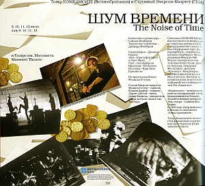 Потом я познакомился с "Эммерсон-квартетом" и попросил их просто сыграть для меня. Это было незабываемым переживанием. Мы были в большой комнате, только мой брат и я, и они играли для нас двоих. Я попросил их всех разойтись со своими инструментами по углам, а мы лежали на полу посередине комнаты, и слушали музыку, находясь как бы в центре квартета. Тогда я заметил, что все шесть частей квартета заключают в себе потрясающую драматическую повествовательную структуру. Повествовательную не в смысле истории, но потому, что фрагменты образуют архитектурное сооружение. И одна из основных тем этой музыки, как мне показалось, - память. И лежа на полу в комнате, я понял, что слушаю квартет иначе. Это не то же самое, когда сидишь в зале, а перед тобой на сцене играют музыканты. В этот момент у нас родилась очень простая идея. Просто помочь, посодействовать зрителю, чтобы он услышал ту же музыку иначе. Мы попробовали организовать театральное пространство, в котором музыка заживет новой жизнью. Квартет этот очень много рассказывает о собственной жизни Шостаковича, он заряжен его личными впечатлениями. Часто люди играют несколько его квартетов подряд, но и тогда получается биографический, исторический подход. Мы постарались, во-первых, создать окружающую среду, которая поможет услышать квартет по-новому, а во-вторых, поместить его в биографический, исторический, поэтический контекст. Теперь вы захотите спросить, что же у нас получилось? Не знаю. Но все определяет та музыка, которой сочинение Шостаковича заканчивается. Получился спектакль, в котором театр встал на службу музыки. В нем занято 4 актера моей труппы. И четверо музыкантов из "Линкольн-центра". А больше я вам не расскажу, иначе не останется сюрпризов. Марина Тимашева: Собственно сюрпризов почти и не было. Разве что экран, на который проецируются фотографии и киносъемка, окажется собранным из белых листов бумаги формата А-4. Это эффектно. А так: две трети спектакля это нарезка разного рода информации о Шостаковиче, звучащая как будто бы в радиоприемнике. Обоснование приема содержится в тексте: сообщается, что композитор тайно слушал Би-би-си, и что музыка его обошла весь мир благодаря радио. (фрагмент спектакля) Марина Тимашева: Полет Гагарина - вторая заявленная в спектакле тема. Сообщается, что Гагарин пел песню Шостаковича "Родина слышит, Родина знает", и она стала первой песней в космосе. Отсюда же рождаются визуальные образы: перемещающиеся по сцене, как будто в состоянии невесомости, предметы - подсвеченные ламповые радиоприемники, женские платья и костюм дирижера, музыкальные инструменты. Из рукавов рубашки вырастают человеческие руки, а виолончель, вдетая в брюки, пускается в пляс. Разные голоса на русском и английском языках тем временем продолжают рассказывать о том, что Шостакович не любил фотографироваться, что боялся кататься на лыжах, но катался, дабы преподать детям урок мужества, что держал на случай ареста собранный чемодан, что подрабатывал тапером. Время от времени в повествование включаются рассуждения самого Шостаковича (фрагмент спектакля) Марина Тимашева: Визуальный ряд строг и графичен, есть отдельные очень эффектные сцены. Например, когда Шостакович должен оправдываться перед коллегами, отрекаясь от собственных произведений, четверо артистов разбирают на составны