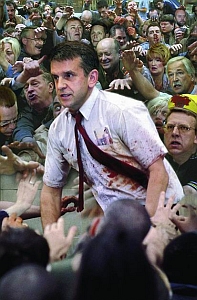 В Москве завершилась выставка "Постсоветская демократия. 15 лет пародий". Проходила она на задворках Думы и Кремля, в зале нового Манежа. На картинах - все сплошные обитатели этих соседних величественных зданий. Лица этих персонажей с помощью цифровых технологий и компьютерной графики вписаны в сюжеты полотен старых мастером, инсталлированы в кадры известных кинофильмов, прослоены разными живописными цитатами из Гойи, Брейгеля, Босха и русских передвижников.